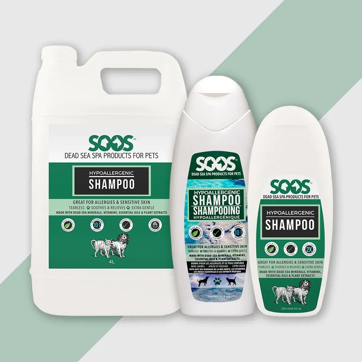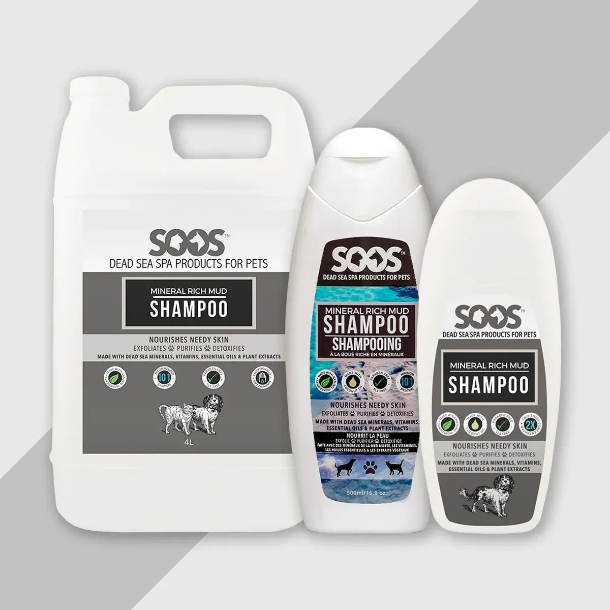 Harsh chemicals in most pet shampoos strip away natural oils, leaving your cat’s or dog's skin and coat dry, brittle and damaged. Our classic formula provides deep cleansing and detoxifying properties that moisturize your pet's hair and skin and improve overall health. Soos Natural Deep Cleansing Shampoo combines all of the exclusive benefits of Dead Sea minerals with the natural antioxidant, antiseptic and antibacterial properties of coconut oil, lemon extract, orange oil, tea tree oil, lavender oil and honey to gently clean, calm and cleanse your pet's skin and coat.
